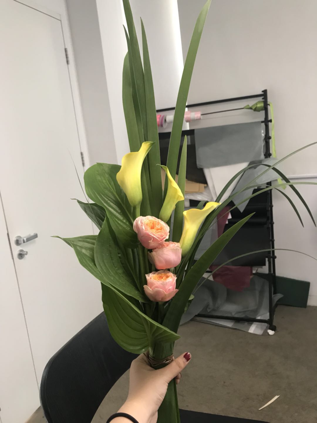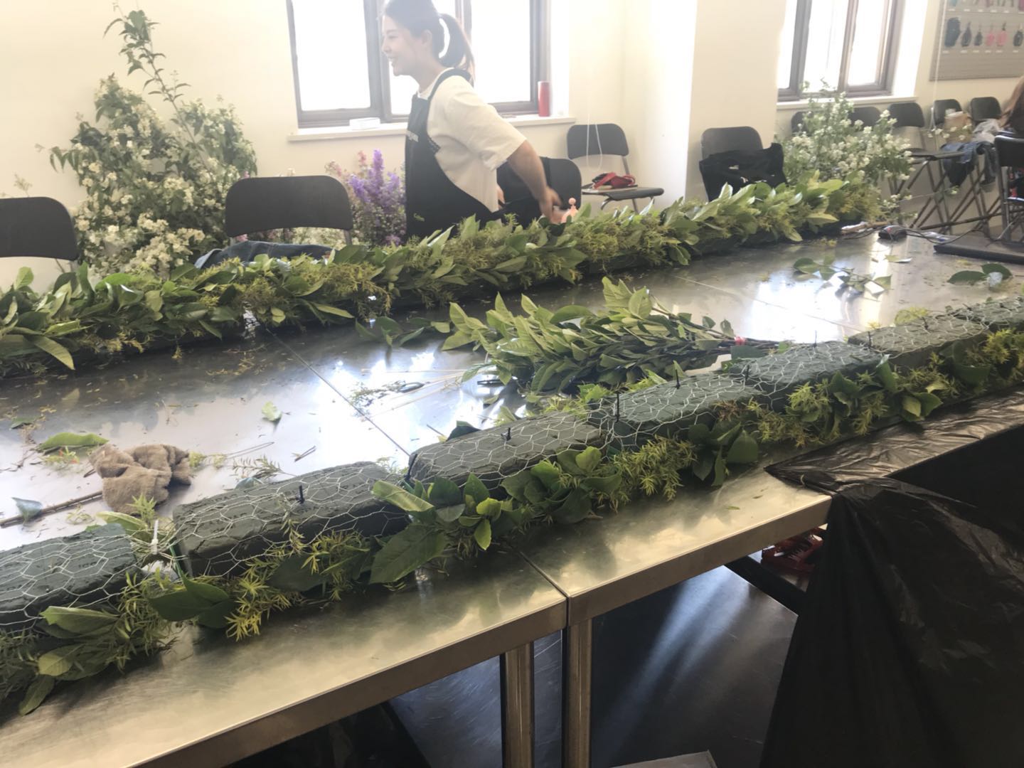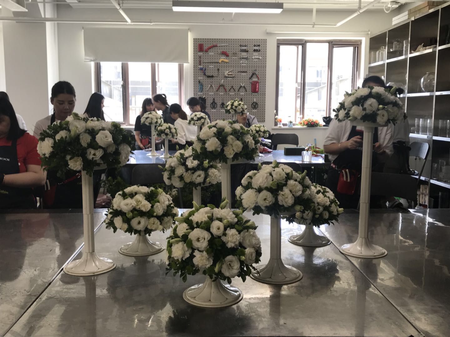 刚开始的几天,正好是打基础的时候,曹老师也非常严厉。绝对不可以把剪刀随意放在桌子上;花艺师为了表现专业性,做花的时候不可以坐着;要妥善处理垃圾;动作要快,但是质量不能低。每天都觉得很折磨,站到脚麻,往住宿的地方赶的时候,脑子都要休克了。