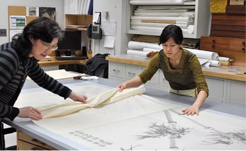 温特图尔/特拉华大学的艺术保护项目,图为对东亚绘画的护理和安全处理,图片来源:conservators-converse.org