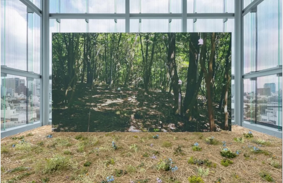 的确是这样,刚开始打算建造一个观看影像的箱型空间,后来我放弃了这个方案。希望画廊外的东京都市风景也被纳入展览之中。这样就能让大都会和自然之间产生对话。对我来说,周围环境也很重要。