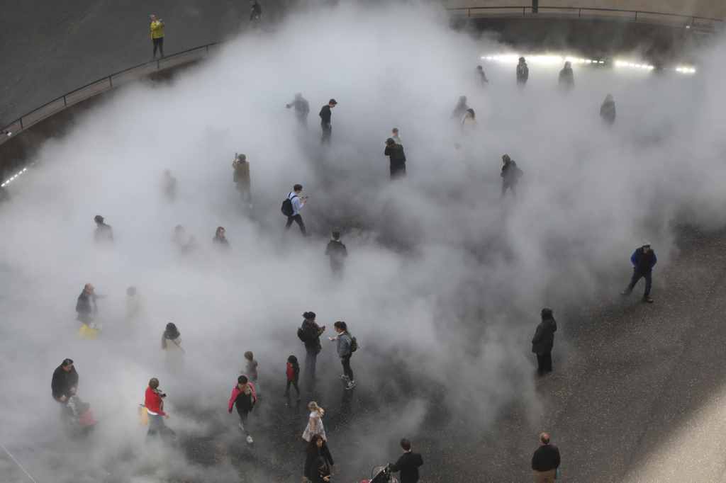 一位短暂无定形艺术的孤独创作者中谷芙二子(1933年生),以雾之雕塑者的传奇生涯获得世界级声望。身为研究雪而知名的科学家中谷宇吉郎博士之女,她创造了制雾机。极细的水流从数千个配备微小针管的微米喷嘴中迸射而出,将水雾化为数以亿计的粒子。她不使用灰尘微粒或化学颗粒等物质,坚持运用物理原则制造雾气。