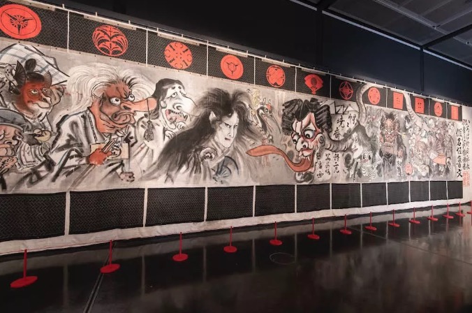 罗斯曼尼尔 “源流(authenticity)”是非常重要的关键词。之前我在东安格利亚大学教授日本语的时候,问课上的学生“为什么要学日语?”,有学生回答说“想要不需要字幕也能看漫画和动画”。能用原本的语言阅读是最理想的。“第五区:线的力量(Power of Line)”的河锅晓斋的全长17米的歌舞伎帷幕《新富座妖怪引幕》(1860)则是从早稻田大学坪内博士纪念演剧博物馆借出,作为漫画源头的代表作展示。